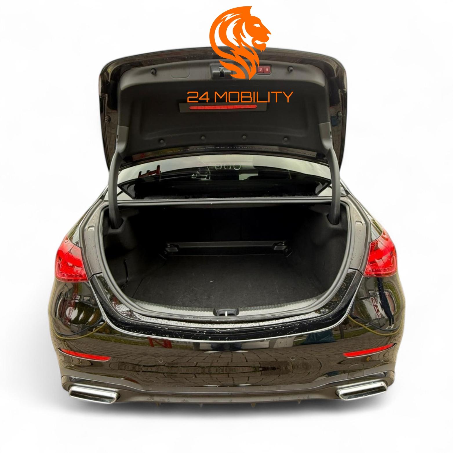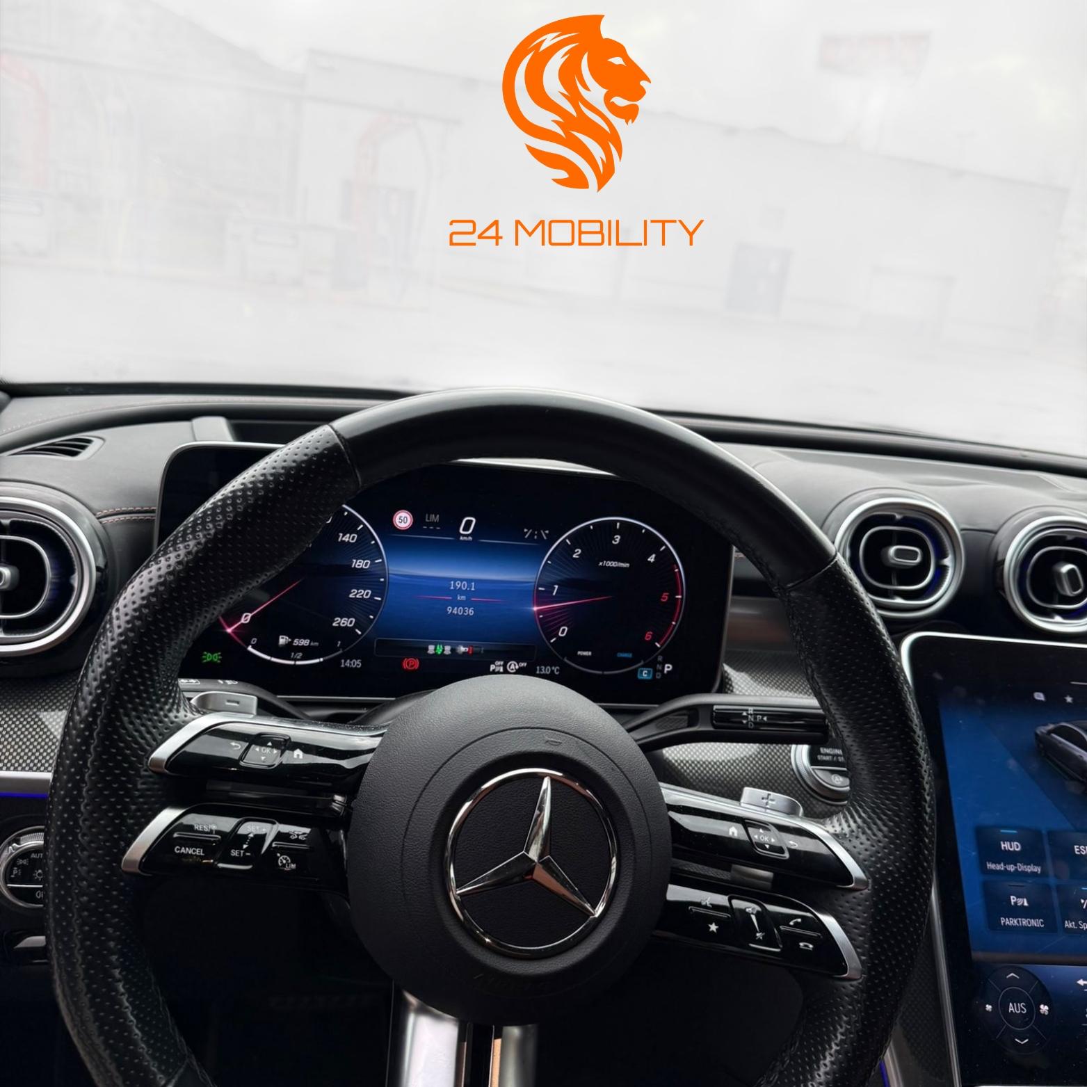 Ambiente-Beleuchtung (Plus) mit direkter Lichtlinie, Ausstattungs-Paket: High-End Business, Fernschließung Heckdeckel, Fußmatten AMG, Head-up-Display (Frontsichtanzeige), Infotainment-Paket High-End, Klimaautomatik (Thermatic 2-Zonen), Komfort-Paket High-End, Kraftstofftank: 66 Ltr. (größerer Inhalt, Volumen 1), Licht-Paket Advanced, LM-Felgen vorn/hinten: 7,5x19 / 9x19 (AMG, Vielspeichen, schwarz hochglänzend, Felgenhorn glanzgedreht), Mittelkonsole Metallstruktur, Multimediasystem MBUX Entertainment, Night-Paket, Panorama-Schiebedach, Park-Paket Advanced, Sitzbezug / Polsterung: Ledernachbildung Artico 2-farbig, Sound-System, Sportsitze vorn